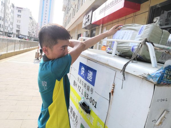 任城区邮政分公司的一线员工顶着火辣辣的太阳,一刻不停歇,确保将邮件及时、快速、安全地送到人民群众手中。