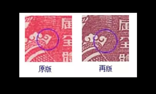 原版与再版的区别主要在于灯笼下方的花纹,注意观察右边第一个花球,原版是断开,而再版是完整相连的。