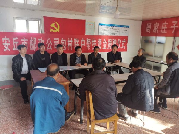 11月6日,安丘市邮政分公司包村帮扶资金捐赠仪式在景芝镇周家庄子村委举行。据了解,本次捐赠的2万元扶贫资金将主要用于周家庄村的亮化工程。
