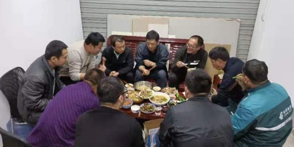 傍晚6点多,莱西分公司安保部门帮扶人员拎着蔬菜、肉蛋等新鲜食材来到镇邮快合作邮件处理中心的职工小家,下厨为投递员、分拣员们准备了一桌丰盛温馨的晚饭。夜色渐深,开饭的时间却一拖再拖。临近晚上8点,这迟来的晚餐才开始,投递员、分拣员、帮扶人员、支局经理,大家围坐一起享受着一天奋战后的放松与温暖。