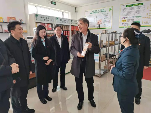 在全省首家镇级“渠道平台转型+邮快合作”示范店,韩总详细了解了该示范店邮快合作收发件、惠农同城寄递、邮乐购、“左邻邮舍”爆款惠农直播、“送文化进村”文创平台、邮烟合作、邮商合作等综合服务功能。韩总还现场观看了莱西邮政主播“莱哥西妹”通过“左邻邮舍”的惠农直播活动。期间,主播“西妹”向韩总详细介绍了一款惠农挂面产品的有机健康品质,并邀请韩总帮助直播带货。韩总爽快地答应,并拿起一包惠农挂面向“左邻邮舍”直播间的广大“舍友”推介道,“这款蔬菜挂面非常好,特别是针对50岁以上的人群,降血糖非常有用,对身体健康非常有好处,大家对这个挂面要多多支持!”此举在直播间引起积极响应和现场热烈的掌声。韩总对示范店整体运营给予肯定并提出希望,今后要突出“商”在共赢,发挥渠道市场前沿作用,不断叠加、代理、代办,推进邮快合作、烟草等异业合作,落实好惠农合作项目,打造获客、留客、惠客场景,以客流带商流、促进物流、资金流四流融通,发挥邮政企业在优化经济结构和稳定产业链供应链的作用。