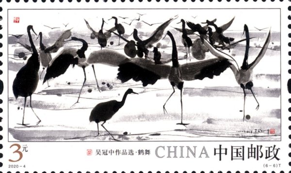 中国邮政2020年3月20日发行《吴冠中作品选》特种邮票1套6枚。