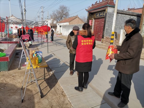 春节临近,为了更好地服务当地百姓,宣传邮政业务和产品,巨野县邮政分公司组织各网点开展新春送福大走访活动,为客户送去福字和年画。