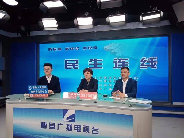 3月5日,曹县分公司领导班子及部分科室人员作客县广播电视台《民生连线》直播节目,和主持人一起接听受理群众热线电话,现场解答群众遇到的困难和难题。该节目通过曹县电视台新闻综合频道、广播FM93.3同步现场直播。