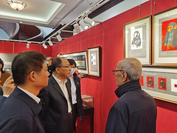 在邵柏林先生亲自引导下,康宁饶有兴致地参观了邵柏林作品展。他详细了解了邵老向黄永玉先生约稿《庚申年》“猴票”的过程,认真欣赏了“猴票”印制过程的不同版别,感慨邵老不吝将家藏的宝贝都拿出来展示给广大集邮爱好者,是对集邮事业的情怀;当听到邵老为设计《齐白石作品选》邮票,跑遍全城,感动了北京画院资料室工作的溥仪外甥王昭,才从其手中拿到300多幅齐白石本人珍藏用于邮票设计,大为感动,认为这份执着难能可贵。据邵老介绍,《齐白石作品选》邮票中有15枚来自北京画院,只有1枚出自私人收藏,那就是胡絜青先生提供的老舍先生旧藏《蛙声十里出山泉》画作。作品是91岁高龄的齐白石先生应老舍所出同名命题所作。齐白石先生通过山泉中小蝌蚪的描绘,表现蛙声十里,让画作“出声”,让诗画相融,圆满地解决了老舍先生出的“难题”。一位文学家和一位书画家对艺术领域的高层次理论探讨,通过邵老的设计呈现于方寸之间。邵老绘声绘色生动传神的讲解也令在场听众不禁拍手喝彩。随后,康宁还参观了邮票鉴评中心,了解了相关服务。