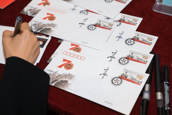 主题邮局内气氛热烈,邵柏林作品展和主题邮局首场邮票设计师见面会正在同时进行。据工作人员介绍,主题邮局一开门就涌进了大批集邮爱好者,许多集邮迷在收到“中国集邮”订阅号发出的预告后就早早安排好了行程。有的集邮者表示邵柏林先生是新中国第一位邮票总设计师,也是集邮者心中的邮票设计大师,展览提供了一个深入了解邵老师的机会,十分难得;有的集邮者说十分期待见到阎炳武老师,他的作品数量多内容精设计美,其雕刻作品更是件件经典;有的集邮者说于雪女士佳作不断,是近年涌现出的优秀年轻设计师,特别是去年设计的《中国人民志愿军抗美援朝出国作战70周年》等多套邮票颇受邮迷追捧;有的集邮者专门冲着《张载诞辰一千年》个性化邮票设计者郭志义先生而来,不仅现场买到了这件市场反响好的邮品并请他签名,还欣喜于收藏他的签名手绘作品。虽然现场集邮者众多,但始终秩序井然。康宁肯定了主题邮局工作人员在活动组织、秩序引导等方面所做的工作。