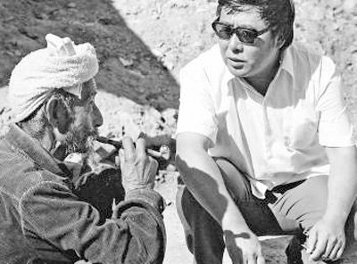 路遥(右)在陕北农村走访。新华社记者 姚宗仪摄