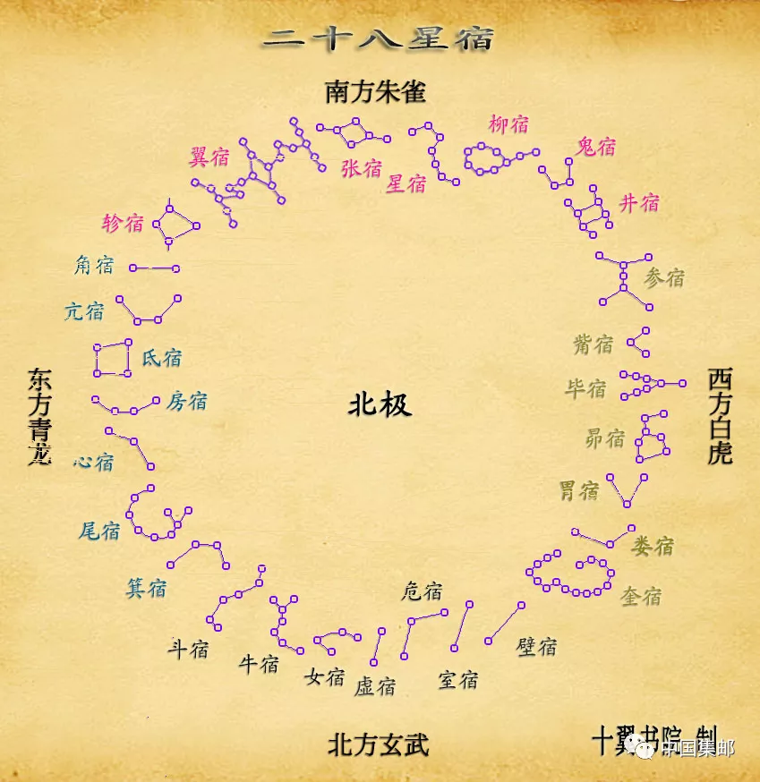 湖南的娄底之名来源于西方之娄宿和东方之氐宿交相辉映;山东章丘名山——危山因危宿而闻名。居于南方的张宿代表着光明和前途,由此诞生了“开张大吉”一词,表达开业前景一片光明之寓意。