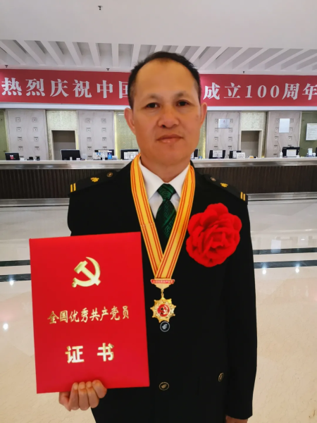 在庆祝中国共产党成立100周年之际,我能获得全国优秀共产党员的荣誉称号,感到无上荣光。这是属于全国所有邮政党员的荣誉。