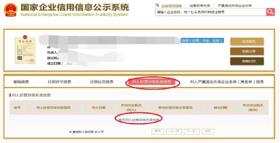 第4步:选择“列入经营异常名录信息”,截取当前页面,显示“暂无列入经营异常名录信息”,即可报名。