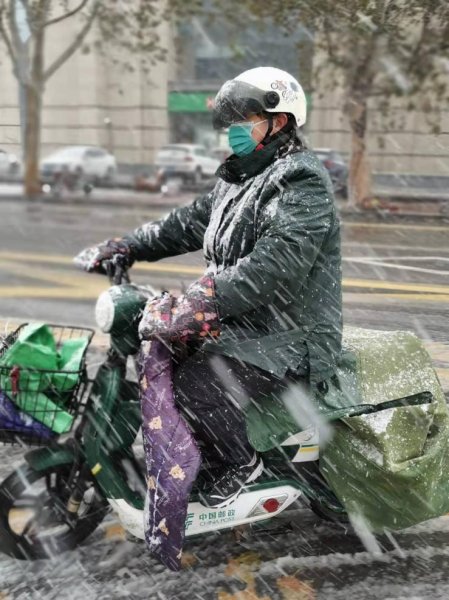 刚入立冬节气,济南就遭遇一场暴风雪天气。此时恰逢“双十一”业务旺季,快递包裹投递作业量激增,由于积雪和道路结冰造成路面泥泞湿滑,给投递工作带来严峻挑战。