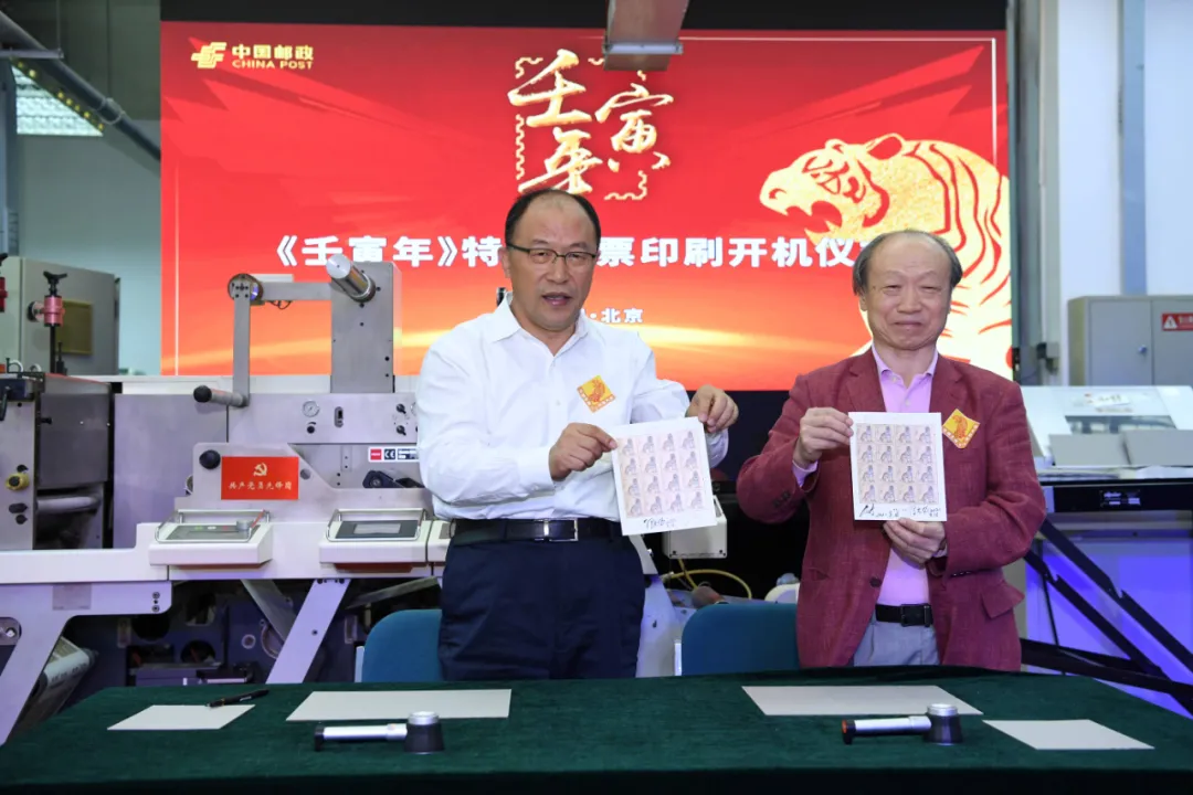 9月16日,中国邮政《壬寅年》特种邮票印刷开机仪式在京举行。中国邮政集团有限公司党组书记、董事长刘爱力,副总经理康宁,《壬寅年》生肖邮票设计者、著名画家冯大中,清华大学美术学院院长、中国美术家协会副主席鲁晓波等出席仪式。仪式中公布了《壬寅年》生肖虎邮票图稿,并启动邮票印制,宣告生肖虎年邮票正式投入生产。