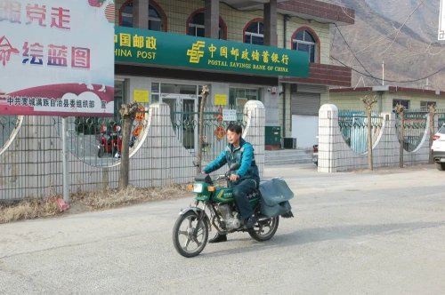 刘保朝驾驶摩托车从宽城满族自治县桲罗台邮政支局出发。