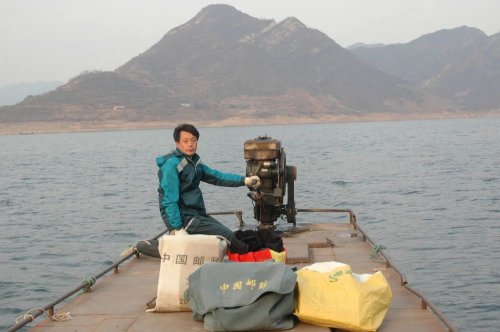 “这里既是库区,又是山区。送快递,谈何容易?”刘保朝说。这条邮路几乎半为高山半为水,独石沟乡的1000多居民散落在环库区4万亩水面周围的大小沟岔中。有的山沟几里长,只住一户人家。每天送信,刘保朝既要骑自行车,又要驾船行一半水路,还得步行爬山。