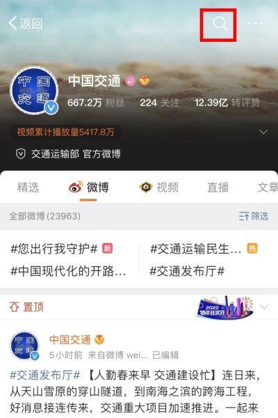 ①打开新浪微博App,搜索“中国交通”,或长按扫码关注。
