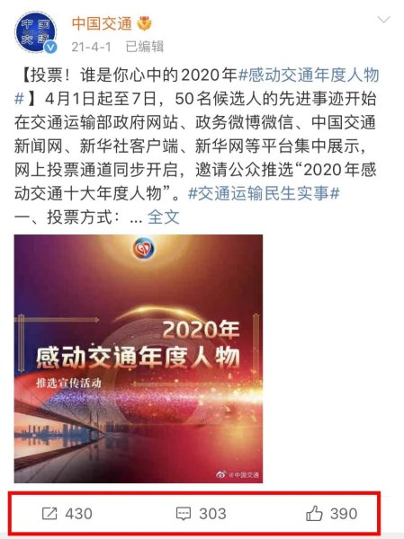 交通运输部政务微博投票方式