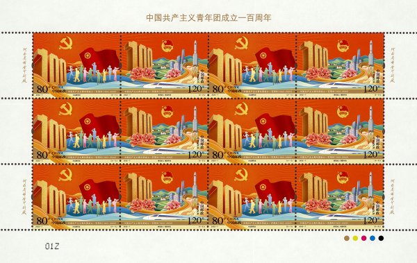 中国邮政2022年5月5日发行《中国共产主义青年团成立一百周年》纪念邮票一套2枚。邮票图案名称分别为“永远跟党走”“请党放心 强国有我”。全套邮票面值为2元。邮票计划发行数量为730万套。