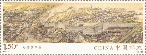 中国邮政定于2022年5月18日发行《姑苏繁华图》特种邮票一套6枚。全套邮票面值为7.40元,邮票计划发行数量为730万套。另发行长卷邮票折,计划发行数量20万本。