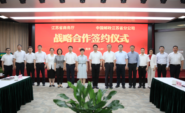 7月1日下午,江苏省商务厅与江苏省邮政分公司在南京签署战略合作协议,充分发挥江苏邮政实物流、资金流、信息流、商流“四流合一”的资源优势,协助全省各级商务部门在县域商业体系建设、电子商务进农村综合示范项目、跨境电商合作、拓展农产品销售渠道促消费稳增长等方面深化交流与合作。江苏省商务厅党组书记、厅长陈涛,江苏省邮政分公司党委书记、总经理陈智泉出席签约仪式。
