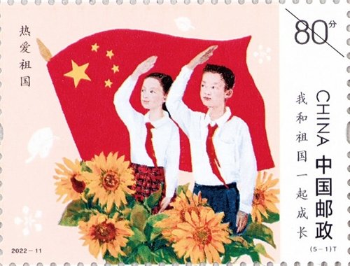 《我和祖国一起成长》特种邮票第1图:热爱祖国。