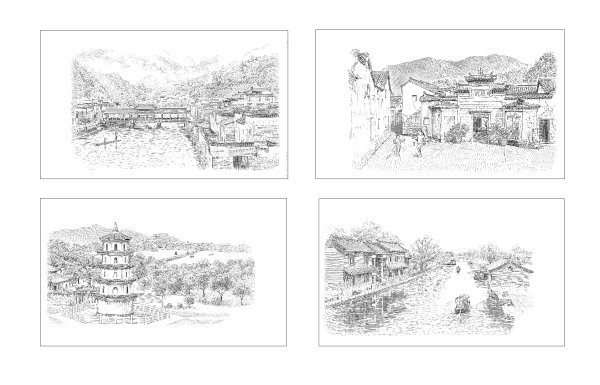 《中国古镇(四)》这套邮票诞生的全过程,从最初的风景照片,到水彩画,最后加上雕刻线,整个过程比我之前设计雕刻稿时更自由,因为色彩和雕刻的结合是根据我的感受去设计,经常都是涂上色彩的同时,觉得用雕刻线处理,画面会更好,再调整画面,进行雕刻布线,反复进行修改调整,最后达到我满意的效果,才停笔。在设计方面,我也是根据不同古镇的特色,在色调上进行区分。选取邮票主图画面的时候,是根据我看了古镇风景照片后,对我是否有吸引力进行挑选。邮票图稿整体以雕刻线条为主,画面整体的关系和结构同样需要依靠雕刻线,所以我在雕刻布线用的时间比较长,并且每棵树,每个房檐,每条船及每个人物都是反复修改调整,尽我最大努力做到精益求精。自从我中选,几乎每天都在反复看图稿,放大缩小,观察画面每一部分的布线是否合理与和谐。小到一个树叶的外形,水流线的长短,我都一点点仔细修理,打磨出好的作品。 这次设计图稿,最大的遗憾是我没有办法去这四个地方采风,只能通过编辑给的照片和自己网上查的照片脑补。根据看到不同角度的照片,在脑海中拼贴实景。但照片和实景还是有出入的,比如第三枚安海镇,我希望有一张同时能看到桥又能看到塔的照片,结果地方邮政帮忙拍照的同事告诉我,两个建筑的距离有200米,没法拍到两个建筑在同一个画面里同时细节清晰的照片。 虽然这套邮票设计师的名字是我,但包含了很多人的努力。前期,编辑承担了沟通协调和资料收集的工作。各位领导前辈对我悉心指导,分享设计经验,同事也给了很多好建议,对我的帮助都很大。制版和生产两个部门的同事不厌其烦地调整与打样,做到尽善尽美。后期的印刷、后加工、储运同样有很大工作量。以后我会更加珍惜每套邮票的设计与雕刻机会,在我这个环节尽自己最大的努力。