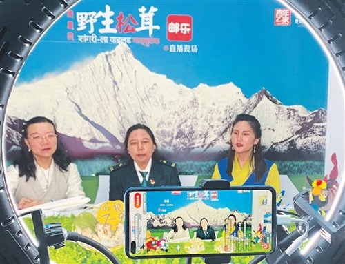尼玛拉木为家乡松茸带货直播。□姚利强 摄