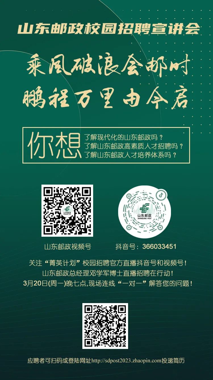 山东邮政菁英计划·校园招聘直播在行动!