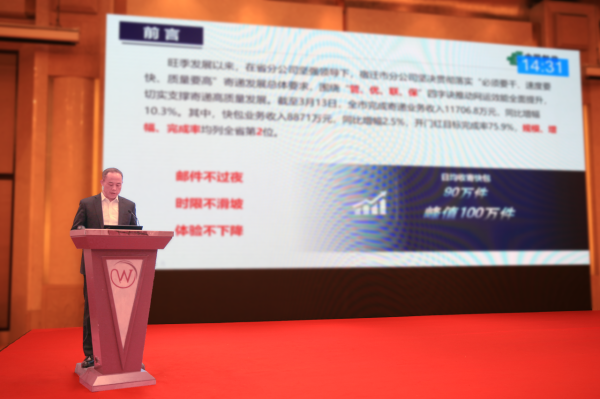 宿迁市邮政分公司围绕“管、优、联、保”四字诀,推动网运效能全面提升,有力支撑寄递高质量发展。分公司党委书记、总经理袁兵在全省寄递工作会上作经验交流。