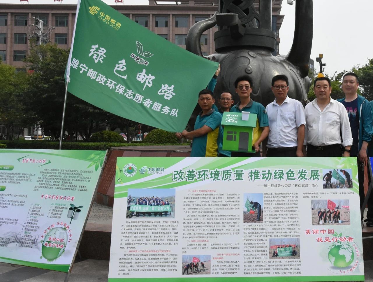 近年来,徐州睢宁县邮政分公司积极践行绿色发展理念,不断优化产品组合和服务体系,争做“绿色包装推动者、绿色运输践行者、绿色金融倡导者”,全力落实绿色邮政行动,助力“环境美”建设。