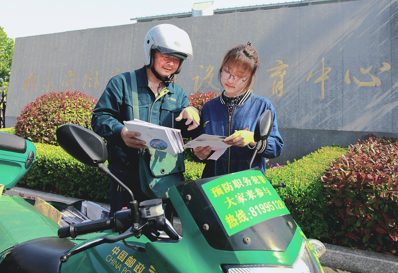 “邮路驿站”入户宣传。如果说厅堂普法是“请进来”,那么邮路普法就是“走出去”。分公司在依托报刊夹带宣传单、包裹张贴标语等进行投递入户宣传的同时,成立以86名乡邮员为主体的普法志愿服务队,聚焦与群众生产生活息息相关的法律法规,联合工商、税务等执法单位,开展“普法进村入企”,为群众普及法律常识。