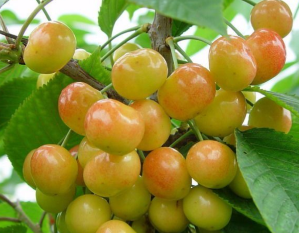 黄蜜是中国的樱桃品种,果肉透亮,是蜜甜型优良品种。它具有耐瘠薄、不抗旱、不耐涝的特点。一般单果重10克左右,果肉透亮,风味极佳的蜜甜型优良品种。口感甘甜,糖分特别高,皮薄肉多,不耐运输,不过深受广大年轻人喜爱,特别好吃。5月下旬成熟。
