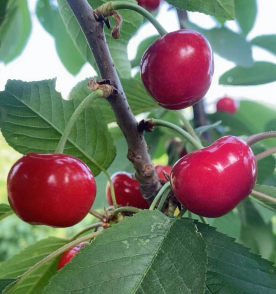 先锋樱桃生存能力强,丰产性好,很少出现裂果,是优质大果品之一。先锋属于加拿大品种,每年的6月中下旬成熟,单果重约8.5g,最大可达10.5g。果皮呈现紫红色,外型像人的心肾脏,果皮厚而且有韧性,很好贮运。