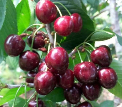 甜樱桃中的“宝石水果”,果实色泽鲜艳,口感好得不得了。萨米脱是先锋”和“萨姆”杂交育成的大型果种,果皮韧度较高,呈现为紫红色,比红灯晚15天左右成熟。