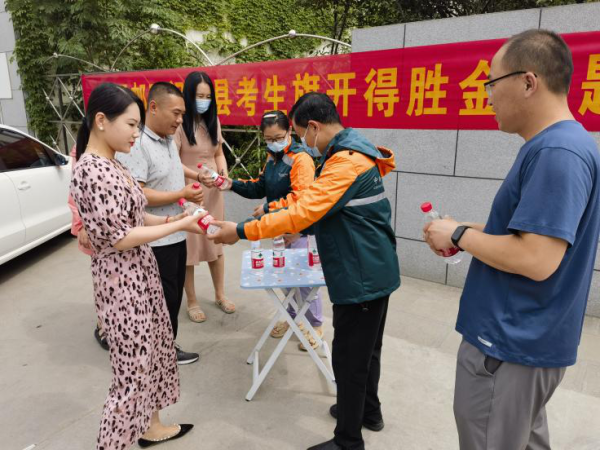 枣庄峄城邮政党员志愿者服务队到枣庄市第一中学进行志愿服务,为高考学生送清凉稳心态,陪同家长一起战酷暑维持秩序,助力莘莘学子超常发挥、喜夺佳绩。