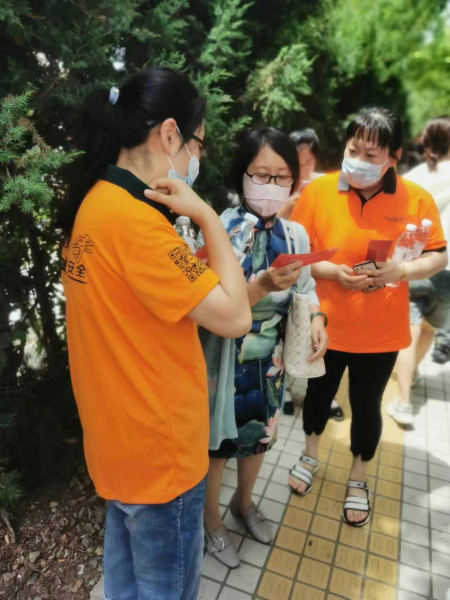 德州一位家长穿着红色旗袍,在考场外等待着参加考试的孩子。德城区寄递业务部的邮政员工向她递上了“录取通知书邮件查询”的宣传页,讲解如何查询录取通知书。她激动地说:“邮政让人放心,今年我们就等你们来送录取通知书了!”