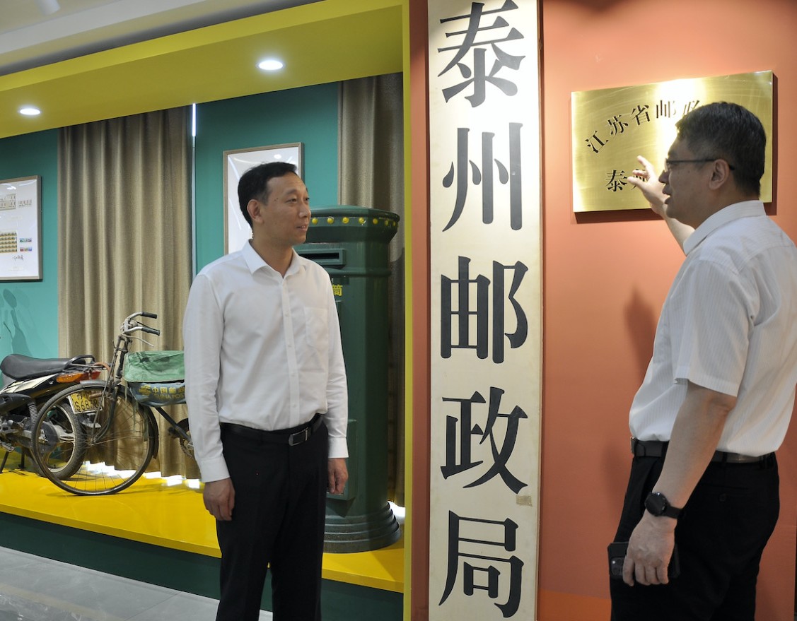 调研期间,徐文进还走访了邮政公司寄递事业部、参观了邮政党建馆。在寄递事业部,他看望了邮政寄递条线的干部员工,鼓励大家多作贡献。在邮政党建馆,他仔细参观了《邮票上的党史》主题展区,详细了解了“国脉所系、传邮万里”背后的使命担当,逐一翻看了富有泰州特色的邮票、邮品、邮册。在“泰州邮政局”铭牌前,他详细聆听了泰州邮政的改革史、奋斗史等讲解。
