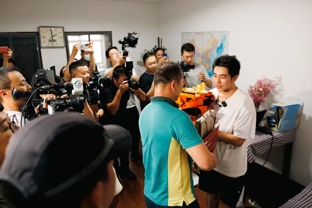 当天,常州市邮政分公司投递员、“常州市五一劳动奖章”获得者徐大磊手捧鲜花,将中国科学院大学的录取通知书送达考生朱子佳手中,并向他表示祝贺,整个投递过程仅用20分钟。