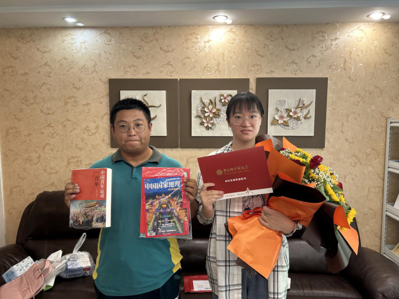 7月11日,投递员陆鹏核实信息后,将中国科学院录取通知书送至张同学手中。随同送达的还有《中国国家地理》省版伴随专刊,以及南通邮政为首个拿到高考录取通知书的考生准备的精美礼物《中国青年运动一百年(1919-2019)》。