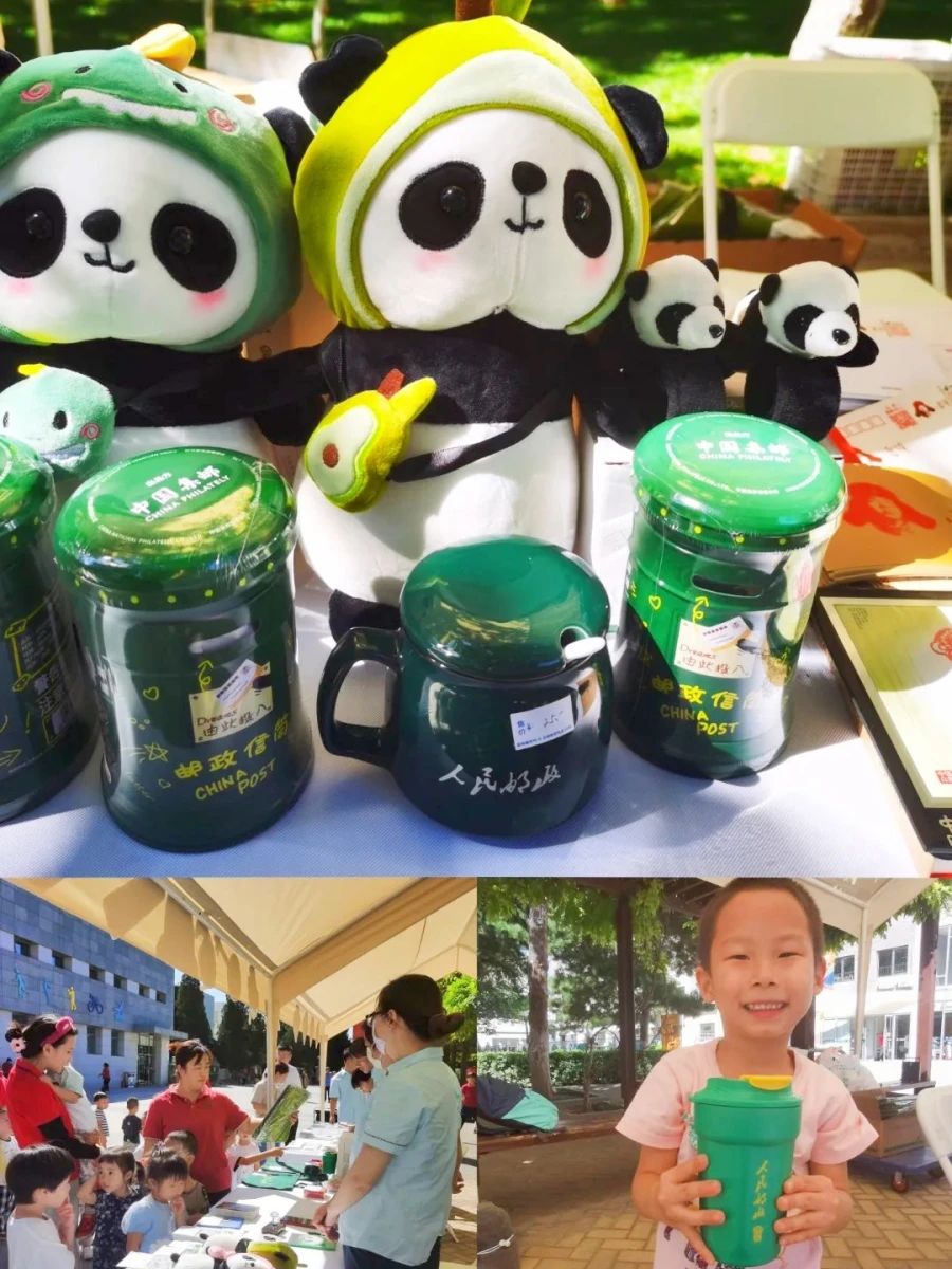 中国大猫纪念封、邮政自行车、邮政面包车、邮政信筒、邮政毛毡包、人民邮政杯、人民邮政果冻包、人民邮政斜挎包、明信片、冰箱贴、纪念封、邮册、个性化邮折……一场邮文化的盛宴,让来自四面八方的参观者流连忘返。与此同时,完成互动任务收集主题邮局特色印章参与抽奖的活动,更是得到许多大朋友和小朋友的喜爱。