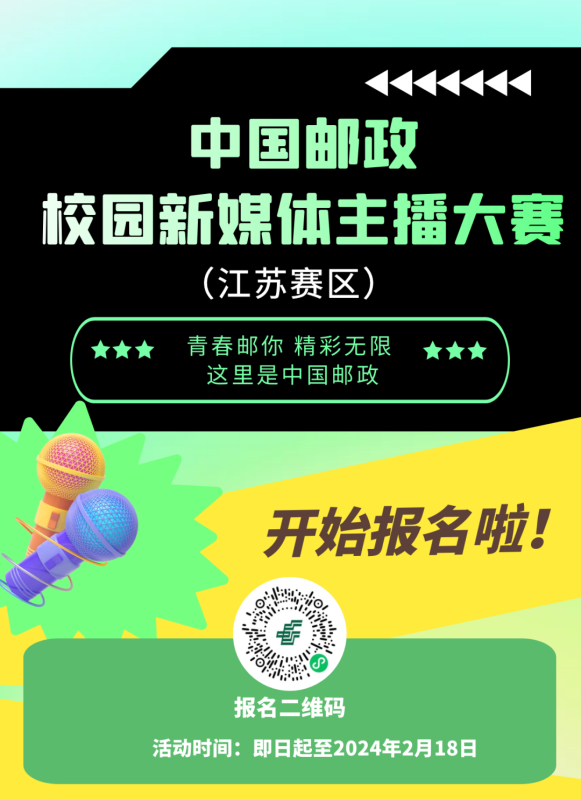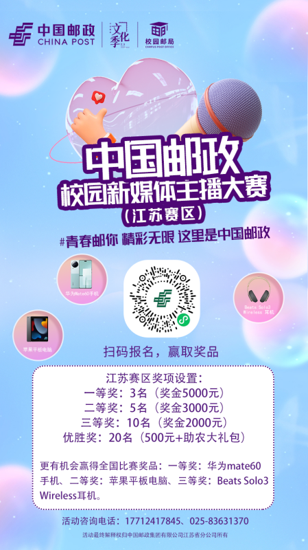 大赛海选时间为即日起至2024年2月18日,决赛时间2024年2月19日至3月31日,参赛者可扫描以上二维码报名,江苏赛区组委会报名及咨询电话:17712417845、025—83631370。