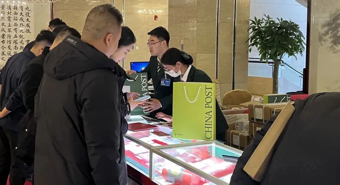 在服务现场,专题服务展示、样品摆放展示、电子海报机、个性化邮票宣传易拉宝、产品桌牌按指定位置摆放,整齐划一。精心制作的全国两会邮政文化产品腰封和不同规格的邮品手提袋,每一处细节都体现出北京邮政对服务质量的严谨态度和极致精神。
