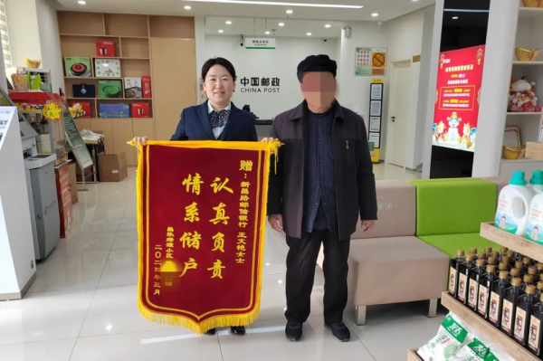 3月19日,70多岁的路大爷步履蹒跚地来到山东省潍坊市昌乐县新昌路邮政支局,手里握着锦旗问道:“王经理在不?我来谢谢她。”看到跑过来的王文艳,他热泪盈眶,展开了锦旗。
