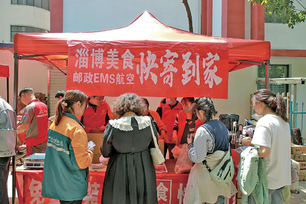 淄博邮政设立服务点,为游客提供便捷的寄递服务。