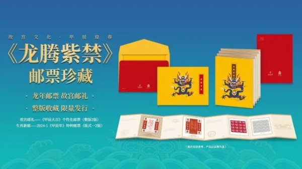 《甲辰太和》生肖个性化邮票选取了10件故宫博物院收藏的、具有代表性的“龙”形象文物,包括织绣、雕刻、陶瓷、玉器等大类,充分体现了自古以来中华民族的优秀技艺与卓然审美。《甲辰太和》故宫生肖贺岁邮票是自兔年《癸卯太和》生肖贺岁系列邮票后的第二款贺岁年礼,邮票尺寸为 255mm×380mm,设计新颖独特,超大尺寸的设计效果便于观赏展示,极具收藏价值。