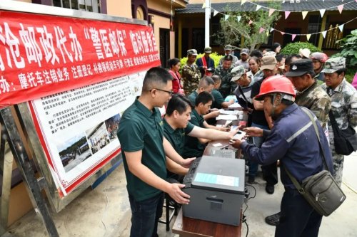 邮路通达抵边村,便民服务也随之深入抵边村。2023年7月,澜沧县邮政分公司与当地交管部门联合启动“警医邮保”项目,在抵边村设置临时服务点,为村民们现场办理摩托车灭失注销登记、保险缴纳、车辆免检、证照检审等业务,获得了村民们的热烈欢迎和一致好评。