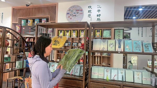 游客在孔子邮局内选购文创产品