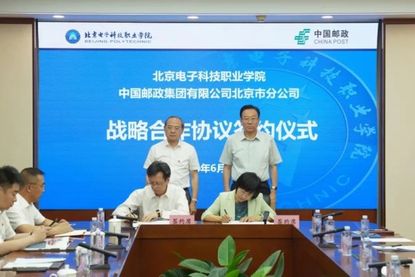 6月21日,中国邮政集团有限公司北京市分公司(以下简称“北京邮政”)与北京电子科技职业学院(以下简称“北京电科院”)举行了一场隆重的战略合作签约仪式。北京邮政市分公司副总经理张斌、范小荣等领导出席,并与北京电科院代表共同见证了这一历史性的时刻。