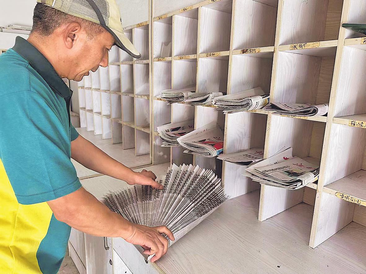 梁森元在分拣报纸。