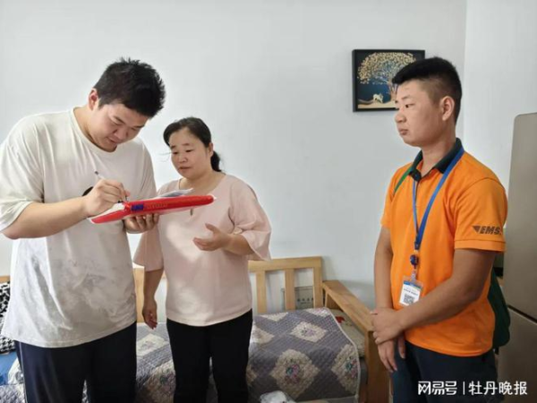 随后,记者跟随党新来到李林楷的家时,李林楷和母亲正在楼下等待接收大学录取通知书。在核对了李林楷的身份证和准考证后,党新将录取通知书交到其手中,让其签收,并表示祝贺。梦想的达成,让这个年仅18岁的少年脸上绽放起灿烂的笑容。中国邮政速递物流股份有限公司菏泽市分公司还特意为李林楷和家人赠送了祝贺花束、为金榜题名的考生送去邮政诚挚的祝福。