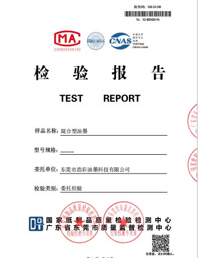 委托国家纸制品质量检验检测中心、广东省东莞市质量监督检测中心对水性油墨、金银等特殊效果水性油墨、水性荧光油墨及水性油墨冲淡剂等进行了VOC含量检测,检验结果为0.26%,远低于15%的标准要求。